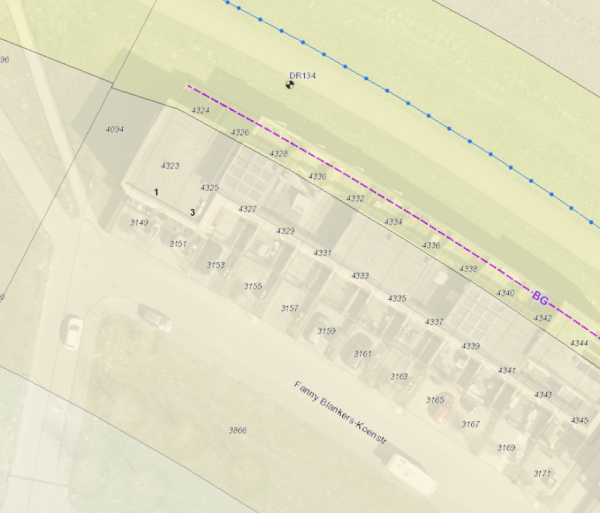 De dijk kent verschillende beschermingszones. Woningen aan de dijk vallen binnen de beschermingszone, rest van de woningen in het geel gearceerde deel vallen binnen de buitenbeschermingszone. In basis zijn boringen binnen deze zones uitgesloten. Op basis van de Keur (Waterwet) kan een verzoek worden gedaan om middels een maatwerkvergunning toestemming te krijgen voor een bodemlus.