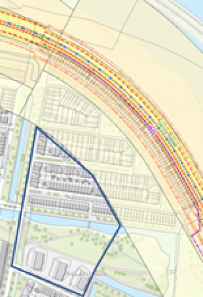 De woningen binnen de blauwe contour (rechter figuur) vallen buiten zowel de restricties van de boringsvrije zone als de waterkering. Hier kan zeker bodemenergie worden toegepast.