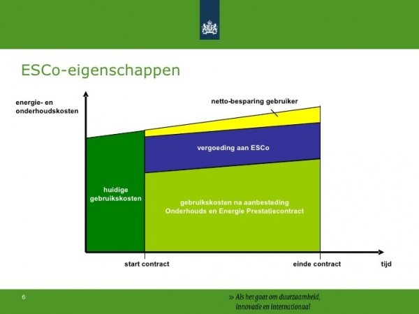 Een ESCo kan worden opgezet voor een groot collectief project zoals bijvoorbeeld de levering van warmte aan een substantieel deel van de woningen in onze wijk.